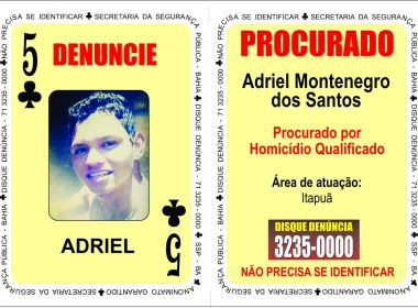 Um homem acusado de matar a ex-namorada, após não aceitar o fim do relacionamento, foi inserido no 'Baralho do Crime' da Secretaria da Segurança Pública (SSP). Segundo o órgão, Adriel Montenegro dos Santos, 21 anos, está foragido desde abril, quando cometeu o crime no bairro de Itapuã. Outros seis criminosos agora fazem parte da ferramenta, criada pela SSP com as imagens dos criminosos mais procurados do estado.